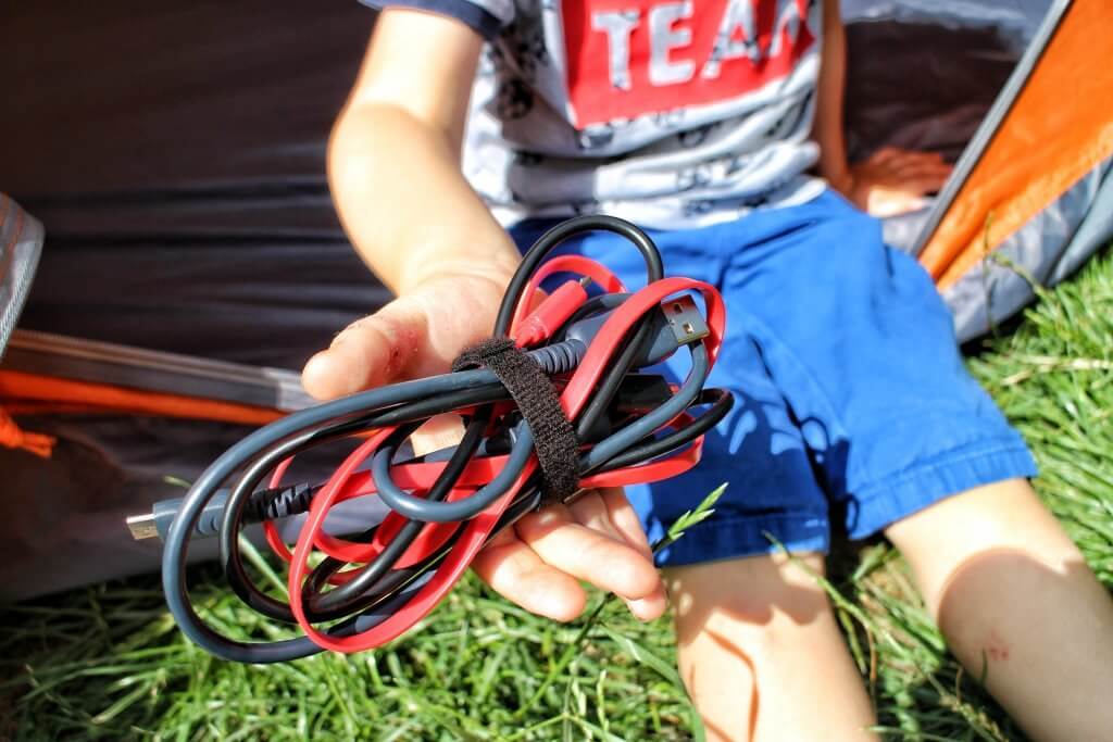 With me being a blogger and Luke being a keen photographer, we take lots of devices with us when we go camping. This is all well and good, but it means that we also have to take a means to keep them all charged. This often means lots of wires. We try to keep our tent as tidy and organised as possible while away, but it can quickly turn into a mess. One hack that has helped is to use VELCRO® Brand One-Wrap Ties to keep all of our cables together. This saves me scrabbling around looking for the right charger as the battery on my phone disappears before my eyes.