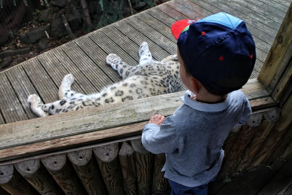 The big cats are always impressive; here Finn gets up close with a snow leopard.