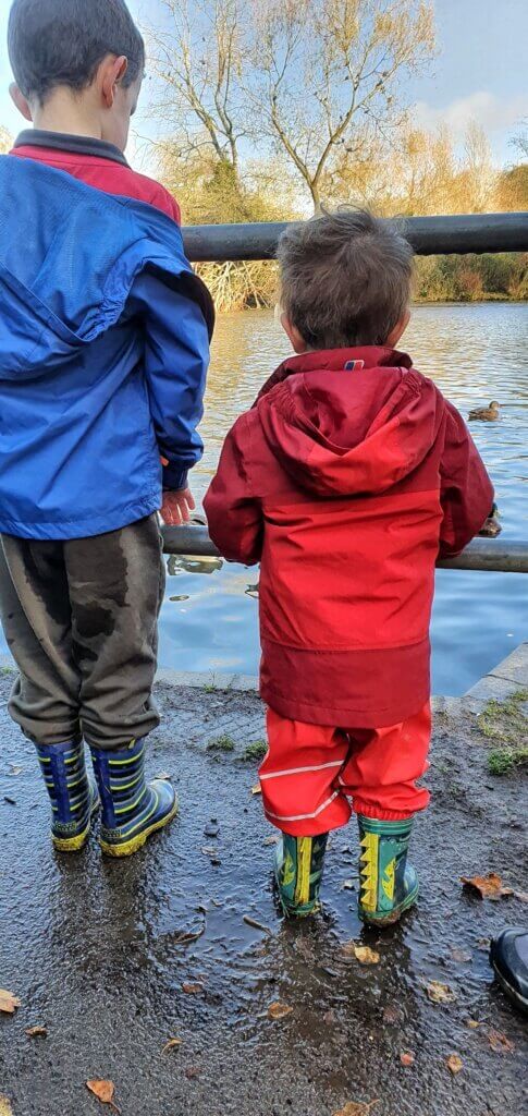 First things first make sure everyone has at the very least a waterproof coat and a pair of boots. The kids both love their wellies and Ollie especially would wear his all the time if he could. It means that they can both jump in puddles to their hearts’ content.